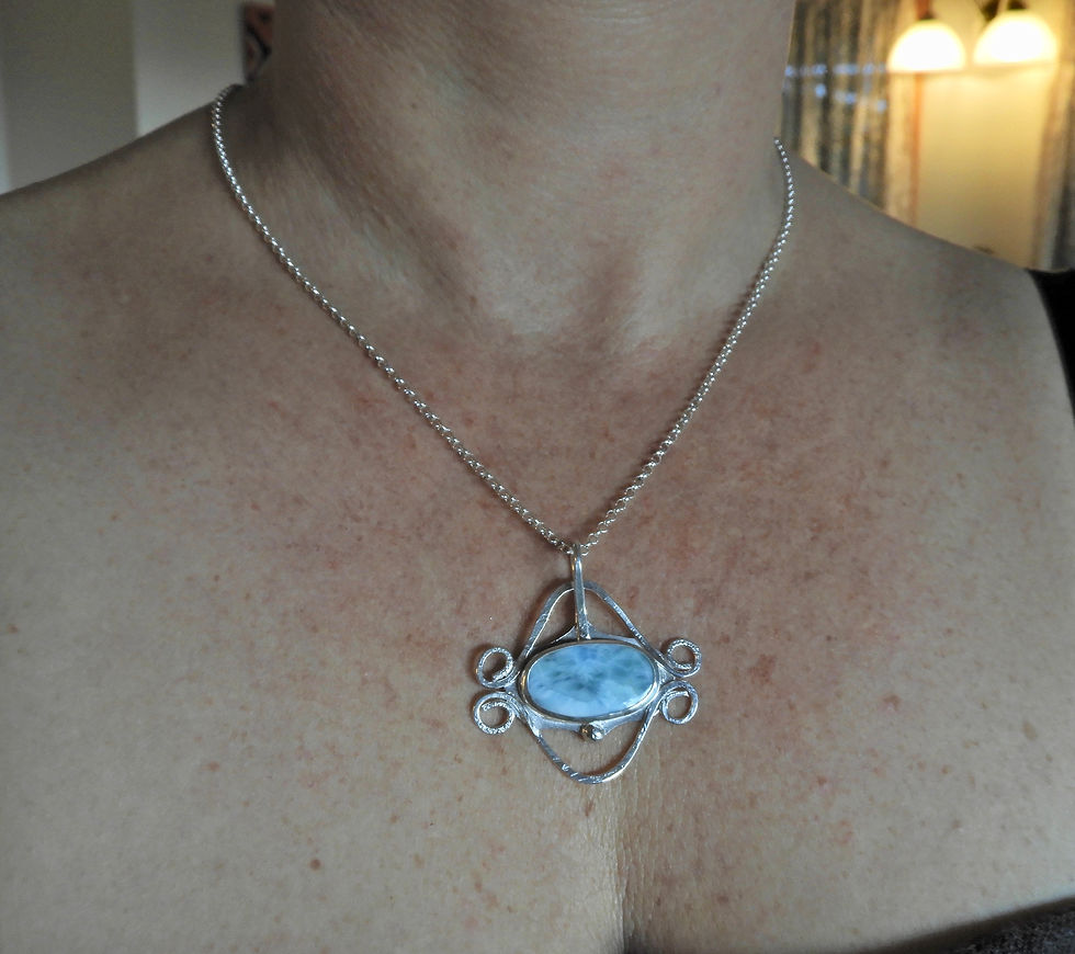 (SOLD)Larimar Wire Wrapped in Sterling Silver (SOLD)
