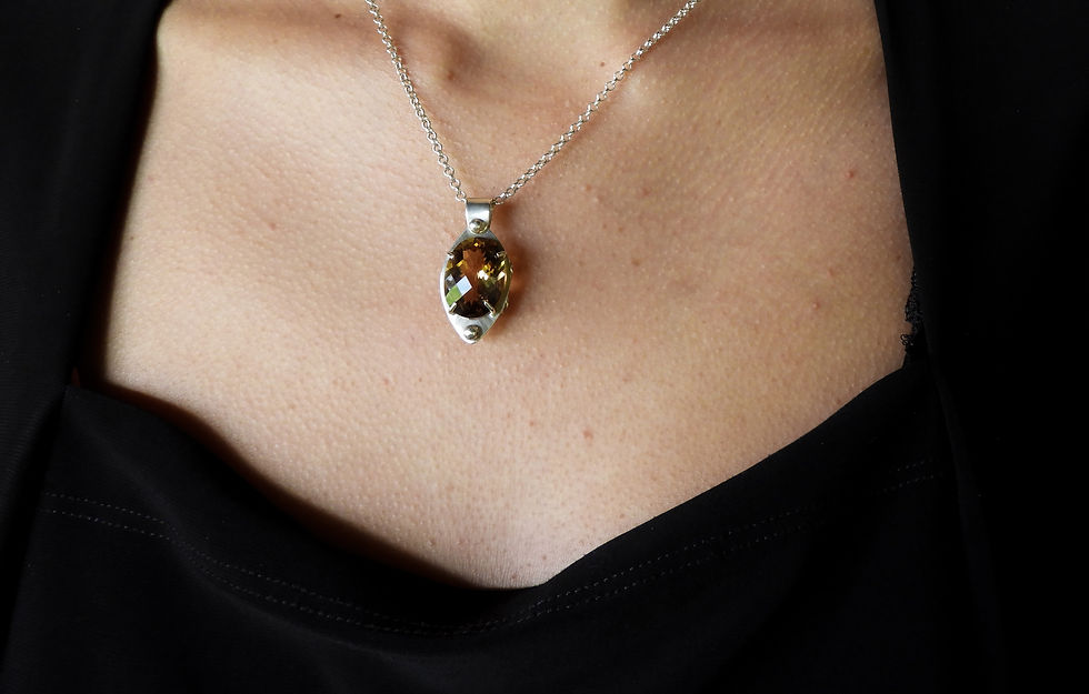 (SOLD)Beautiful Fluorite Crystal & Sterling Silver Necklace